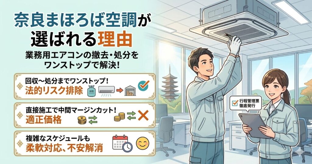 | フロン回収・マニフェスト発行 | 下請け業者が実施(管理が間接的) | 自社または提携専門業者が直接実施・管理 |