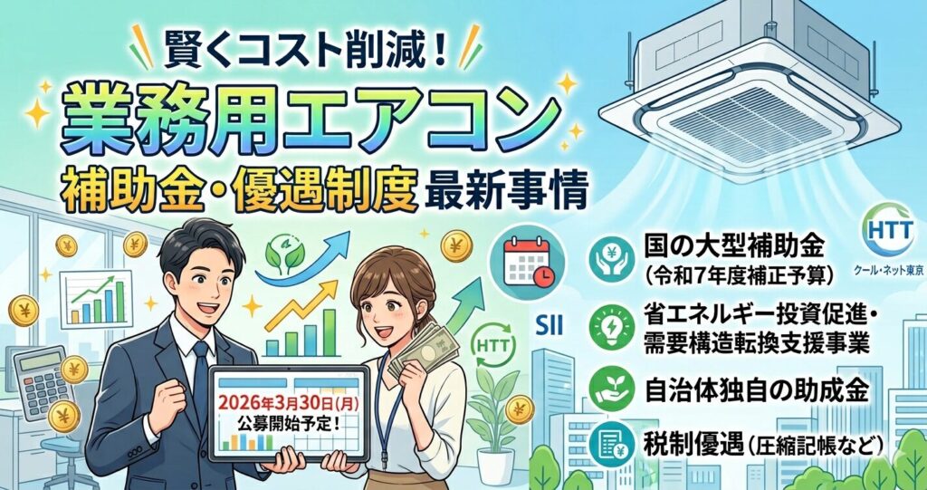 省エネ型業務用エアコンは補助金や税制優遇の活用で実質負担を大幅に軽減可能