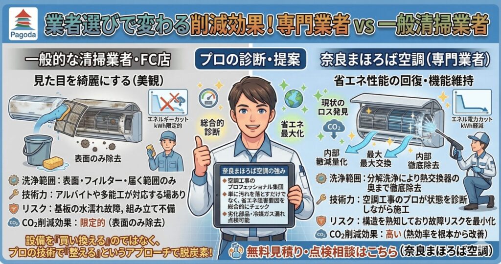 業者選びで変わる削減効果!専門業者 vs 一般清掃業者