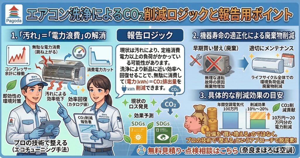 エアコン洗浄によるCO2削減ロジックと報告用ポイント