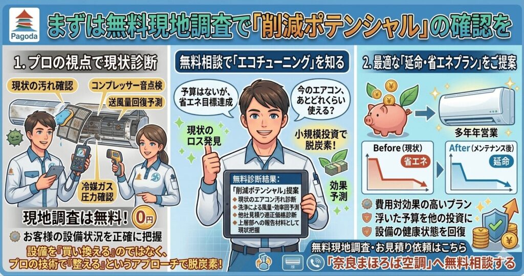 まずは無料現地調査で「削減ポテンシャル」の確認を