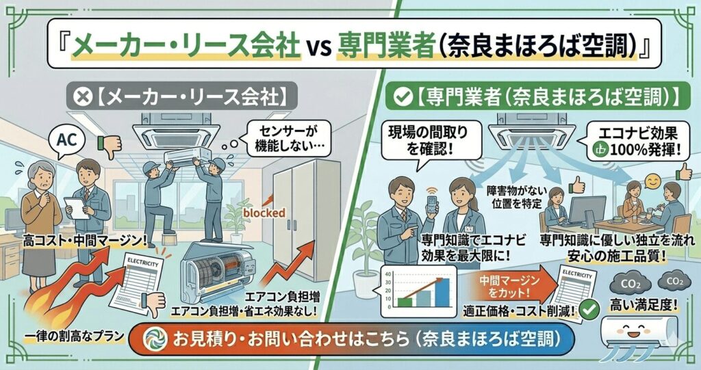 メーカー・リース会社 vs 専門業者(奈良まほろば空調)