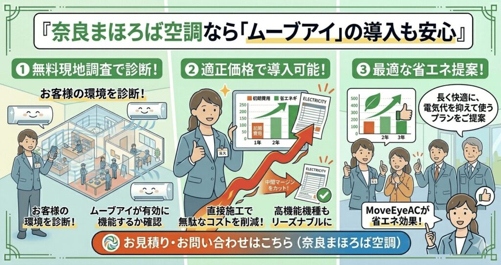 奈良まほろば空調なら「ムーブアイ」の導入も安心