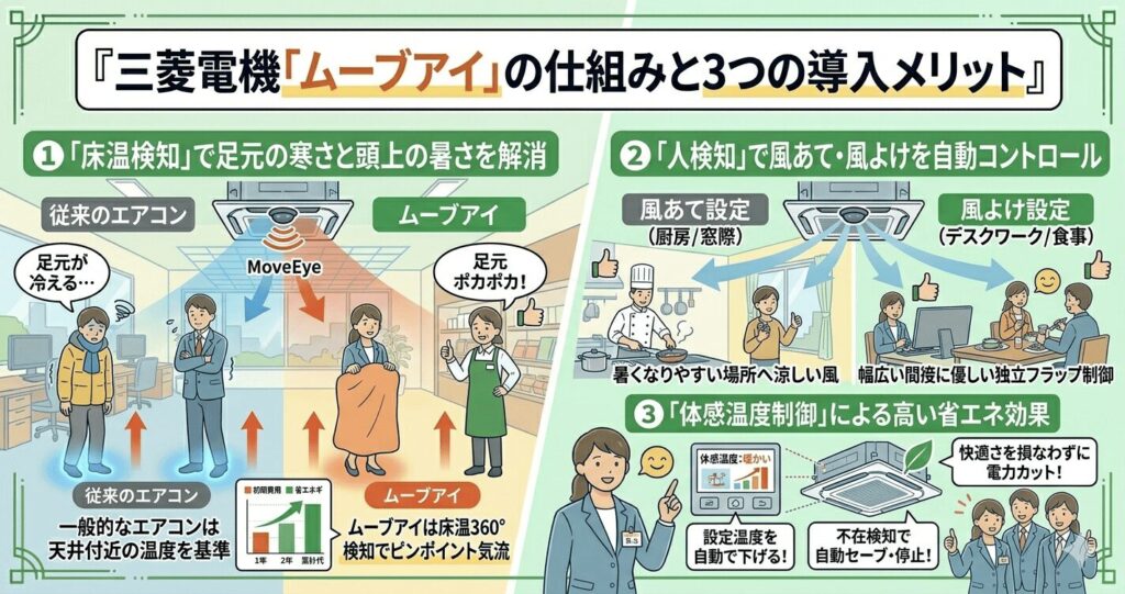 三菱「ムーブアイ」で業務用エアコンの快適性・省エネを最大化|機能と導入メリット