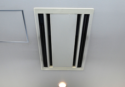 天井にスッキリと収まるデザイン性はそのままに、風の吹き出し口を2方向に絞ることで、必要な場所に、必要なだけの快適な空気を無駄なく届ける。