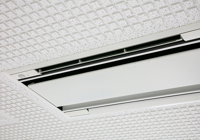 そんな、長方形の空間ならではのお悩みを、スマートに解決するのが【天井カセット形2方向吹出】タイプです。