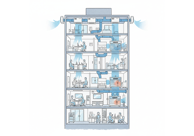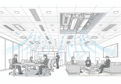 屋外の新鮮な空気を取り込む「外気処理エアコン」や、排気する空気の熱を再利用して省エネな換気を実現する「全熱交換器」といった、高度な換気システムと組み合わせることが可能です。これにより、24時間365日、常に新鮮で質の高い空気が循環する、健康的で生産性の高い室内環境を構築できます。